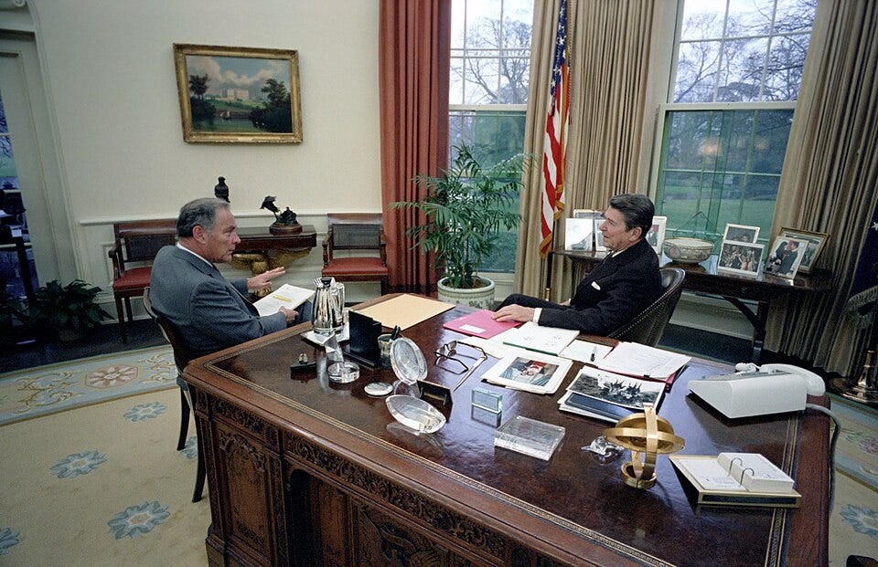 Secretary of State Alexander Haig and President Ronald Reagan in the Oval Office on 2 December 1981 (White House Photographic Collection, public domain).